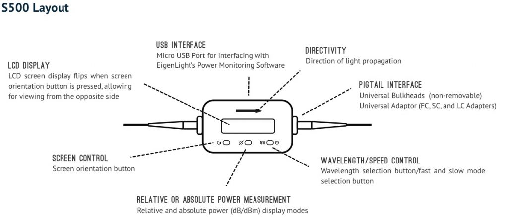 The three button fingertip controls allow for the end user to quickly select the appropriate wavelength (up to three), fast or slow sampling rate and relative or absolute power reading. It comes with an advanced power saving feature that will turn the device on only when it senses optical power, ensuring a long battery life of up to three years. The product also comes with a USB-C interface for device power, remote control and monitoring.